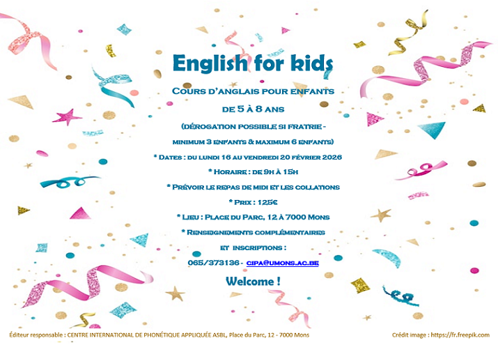 cipa@umons.ac.be, en précisant votre nom, prénom et plage horaire à laquelle vous souhaitez vous inscrire (1 heure maximum par personne), du lundi au vendredi, entre 9h et 17h.